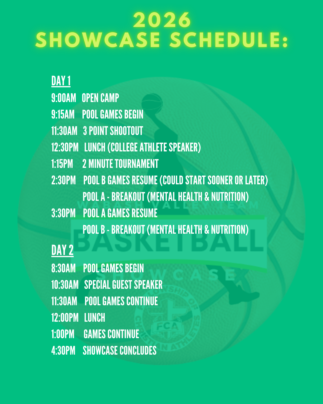 FCA TEAM SHOWCASE SCHEDULE