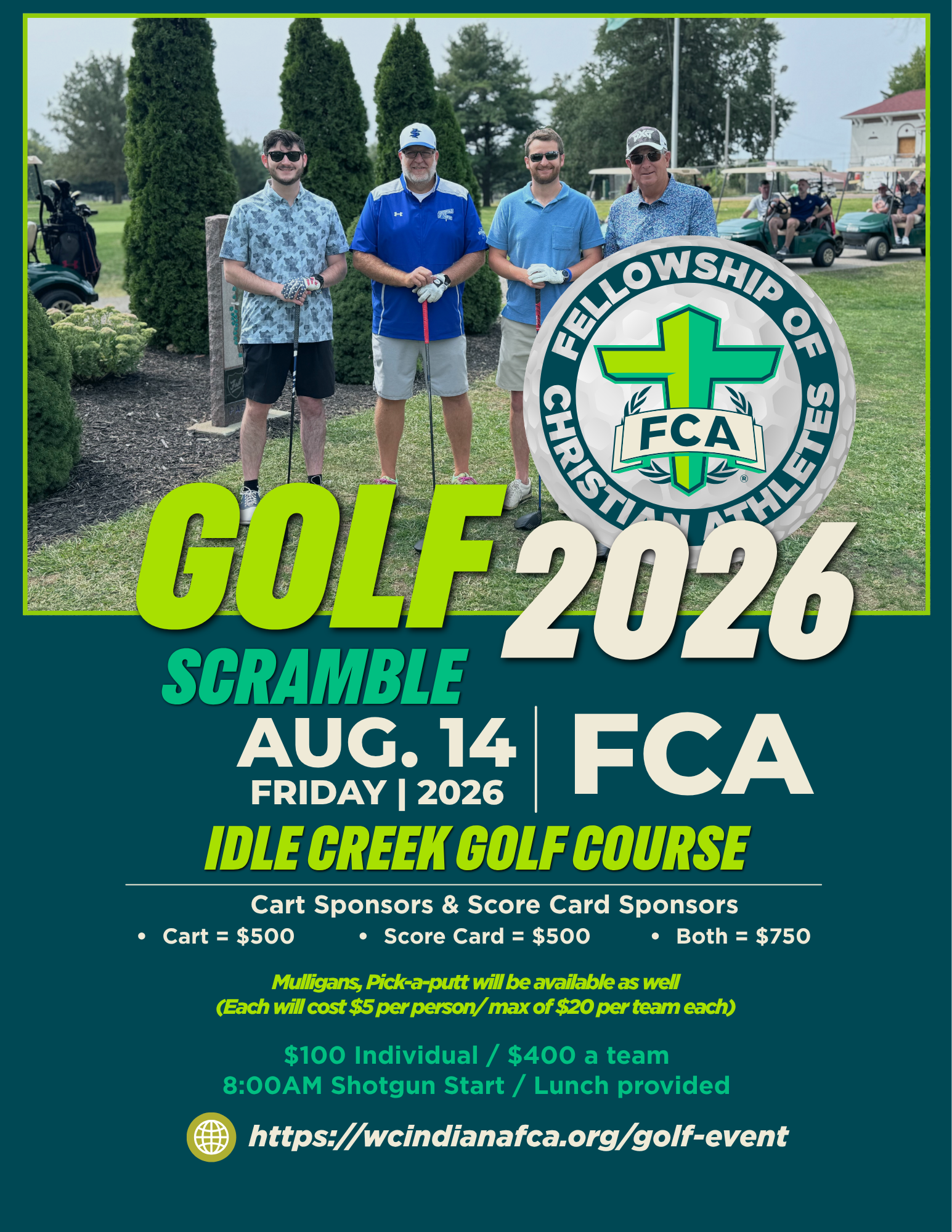Can't make it to this year's scramble? We understand and would love your support. Click the link below to sponsor the 2026 FCA Golf Scramble. Thank you!